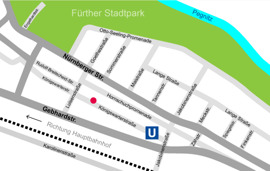 Unsere Kanzlei finden Sie in schönster Innenstadtlage, mit hervorragender Anbindung an sämtliche Verkehrsmittel. Öffentliche Parkplätze stehen direkt vor der Kanzlei zur Verfügung.